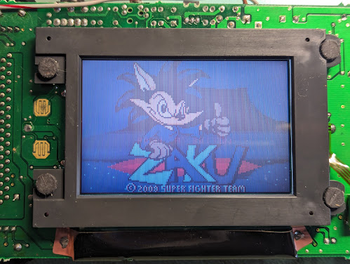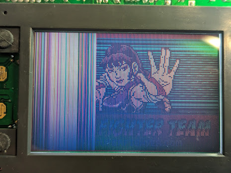 I was asked to look at an Atari Lynx 1 console that had developed a graphics fault. Testing with my Zaku cartridge we see the fault straight away.